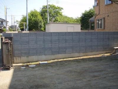 既存のブロック塀に穴をあけて柱を入れて施工致しました。