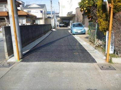 舗装と側溝が陥没していて水勾配がとれず雨が降ると水が溜まってしまっていました。