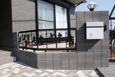 門扉、フェンス、ポストにディズニー商品を使いモダンな雰囲気の中に