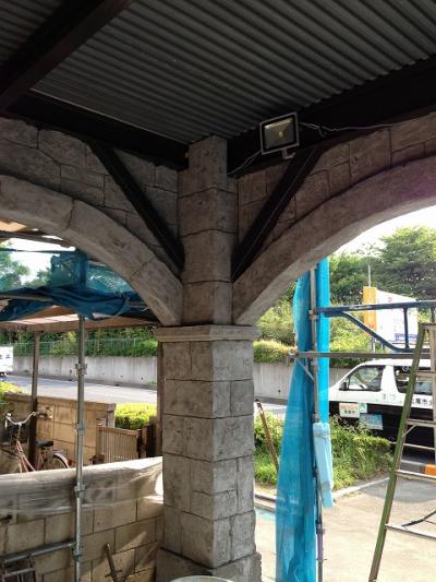 仕上げは塗装で本物そっくりな石積みが完成です。
