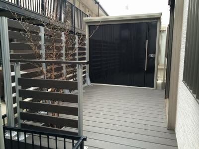 デッキから出し入れしやすい高さに設置致しました。